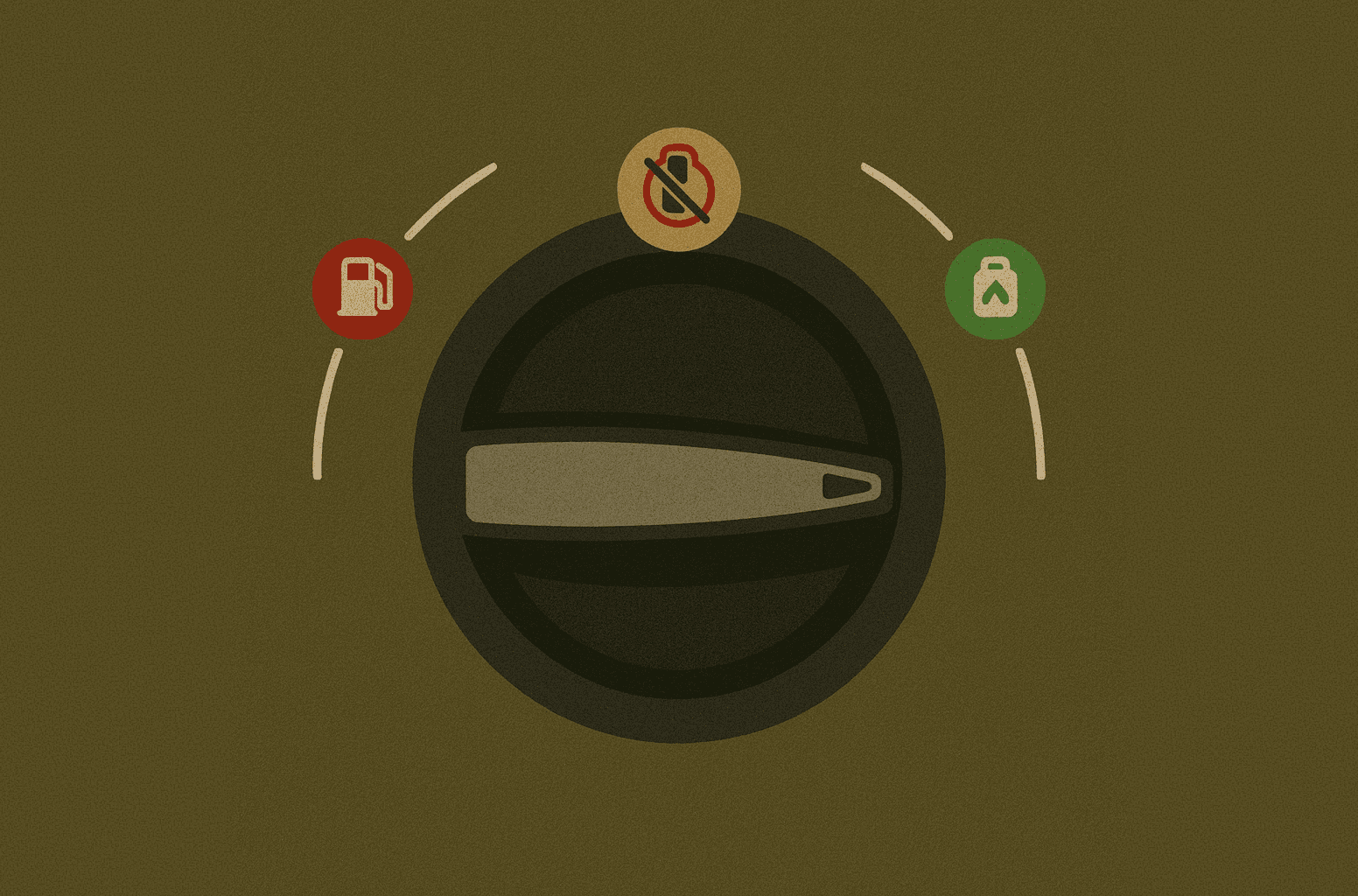 Press the red starter button underneath the fuel mode dial. Hold for around 5 seconds, or until the generator starts up.