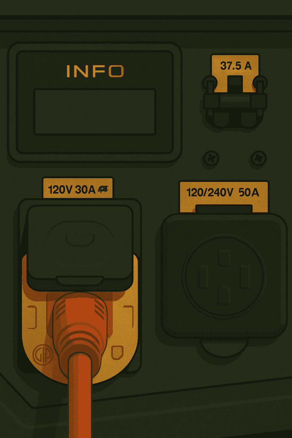 Flip the power switch up (labeled 37.5 A). This is crucial or no power will be sent from the generator and the battery will not charge.